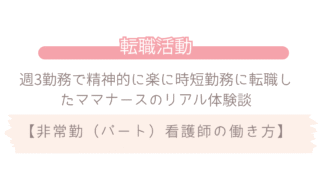 転職活動 【週3勤務で精神的に楽に】時短勤務に転職したママナースのリアル体験談 今回は、私が週5勤務から週3勤務に転職して、家計と心に余裕ができた体験を本音でお話しします。転職前は“働きすぎ”で心も体も限界だった週5日勤務+夜勤+子育ての両立に追われる日々総合病院の病棟でフルタイムで働いていた時は、1歳児の息子を院内託... 2025.08.10 転職活動